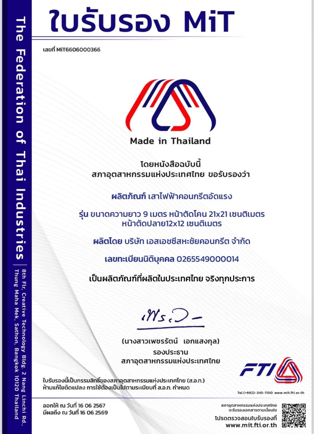 มอก.396-2549 เสาเข็มคอนกรีตเสริมเหล็กอัดแรงหล่อสำเร็จ